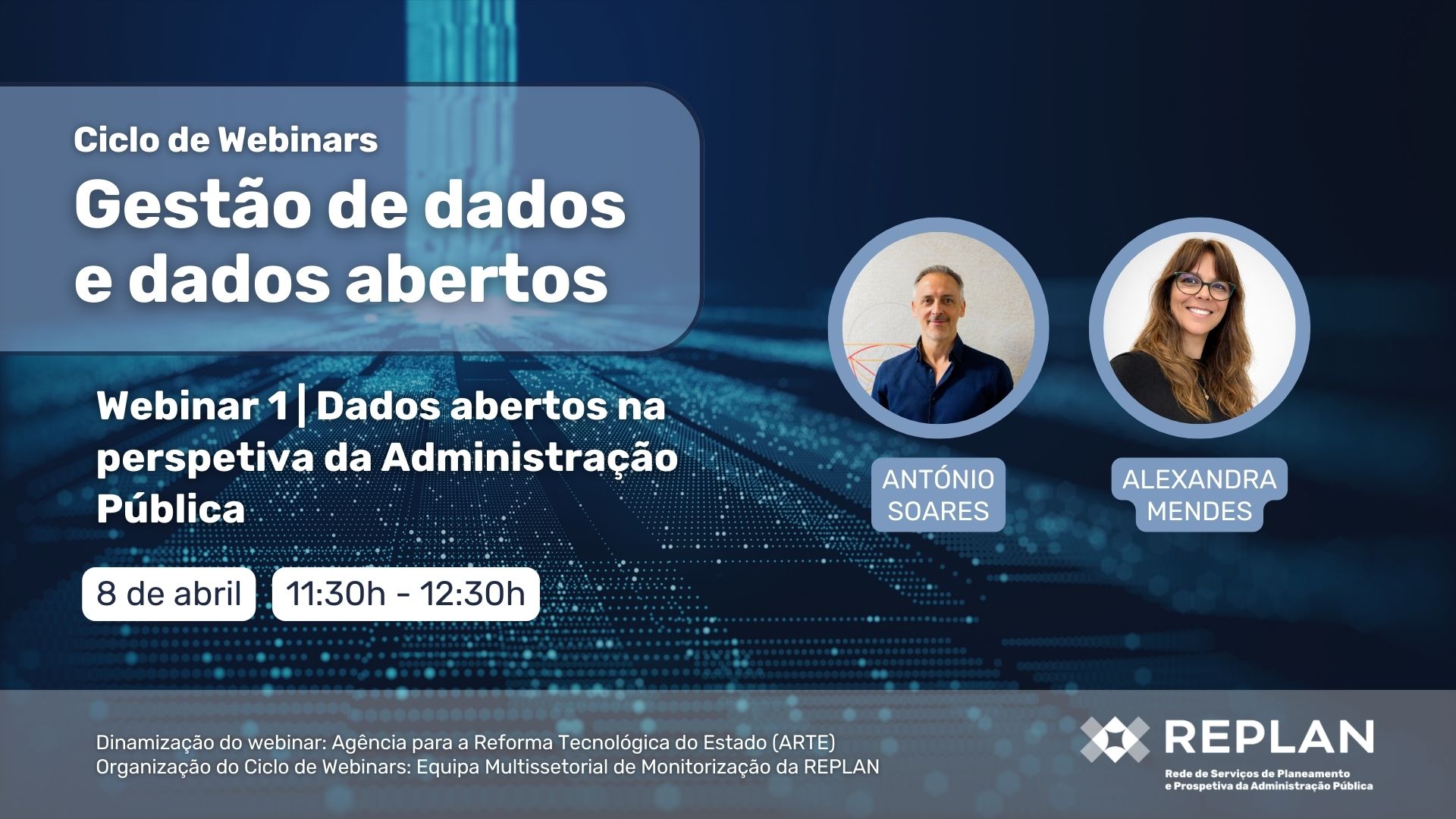 A REPLAN – Rede de Serviços de Planeamento e Prospetiva da Administração Pública promove, nos dias 8, 15 e 22 de abril, entre as 11h30 e as 12h30, um ciclo de webinars dedicado à gestão de dados e aos dados abertos.